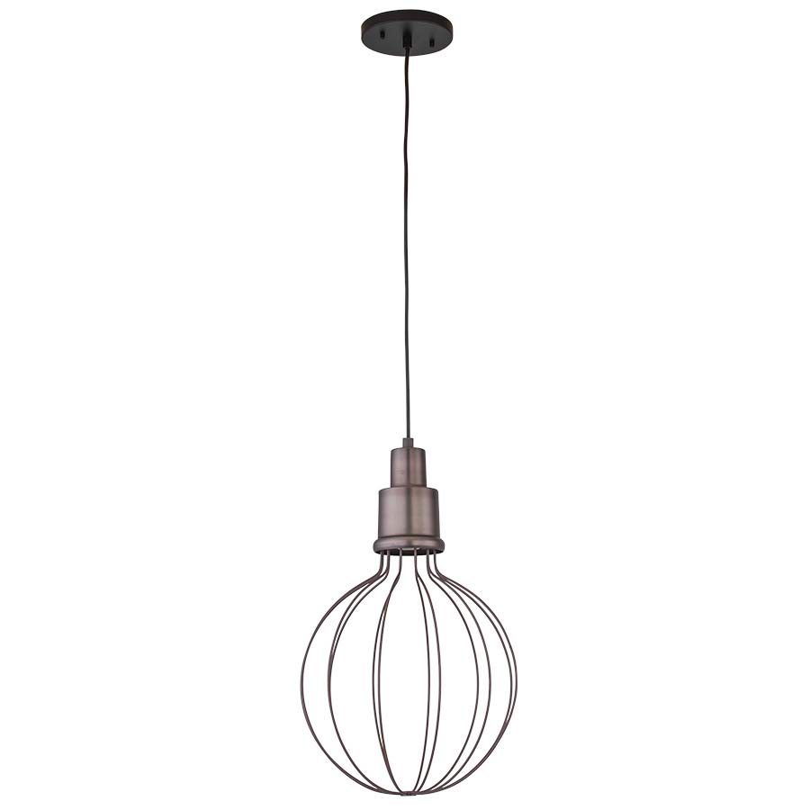 14" Diameter Pendant, with a Pewter Brushed Nickel Steel Wire Frame suspended from an adjustable black cord, medium base socket, 6" diameter Matte Black Canopy, direct wired, recommend 5 watt LED Filament bulb