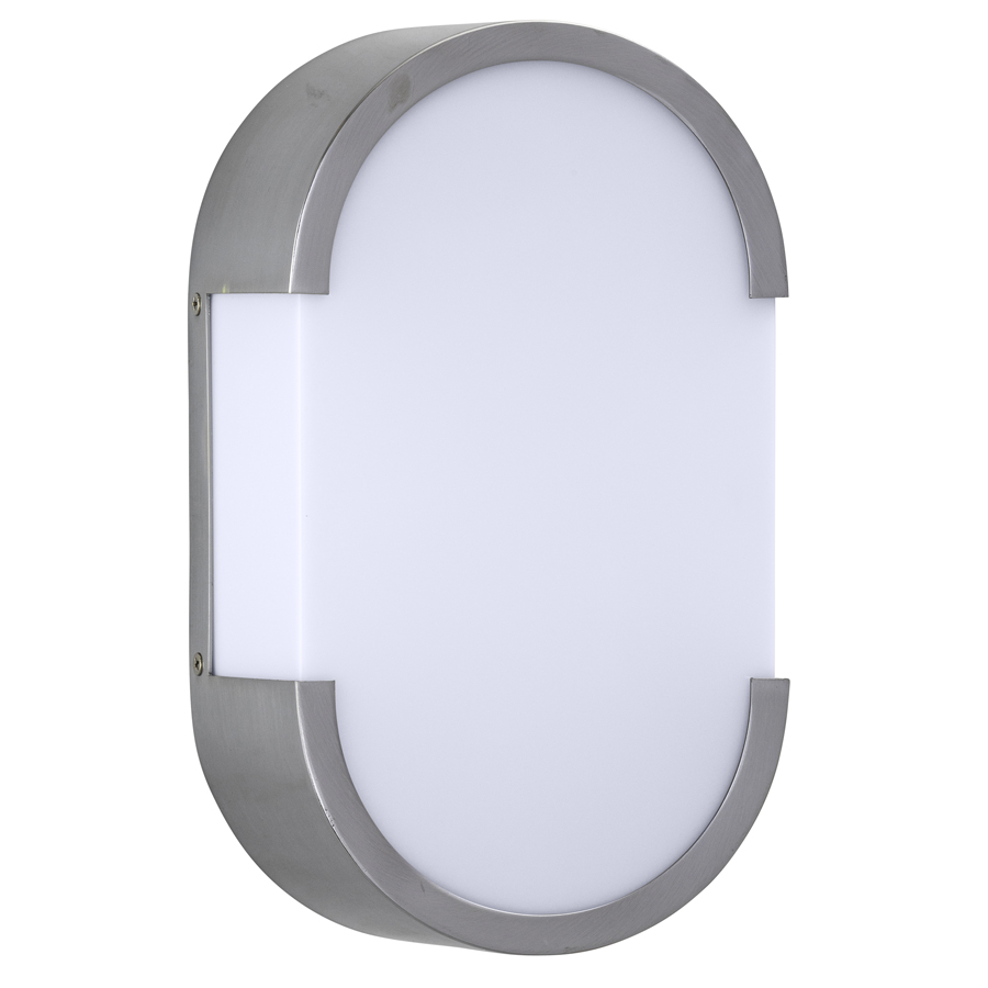 12.25"H Brushed Chrome Wall Sconce, two medium base sockets, direct wired, with White Frosted Acrylic Diffuser. Recommend two 800 lumen LED bulbs