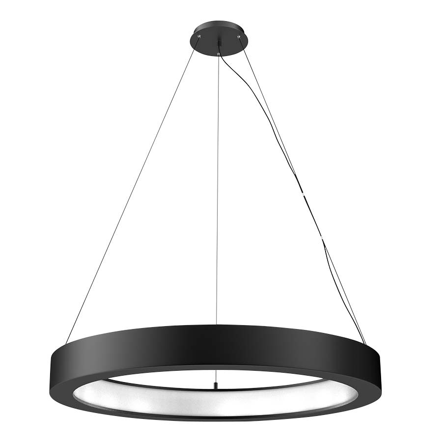 42.5" Diameter Pottery Bronze Integrated LED Ring Pendant, 128 watt, 10,240 lumen, 3000K, 90CRI, dimmable, Triac ELV dimming, direct wired, Silver Cord and three Nickel Steel Cables adjustable to 72" max Height, with Clear Frosted Acrylic Diffuser