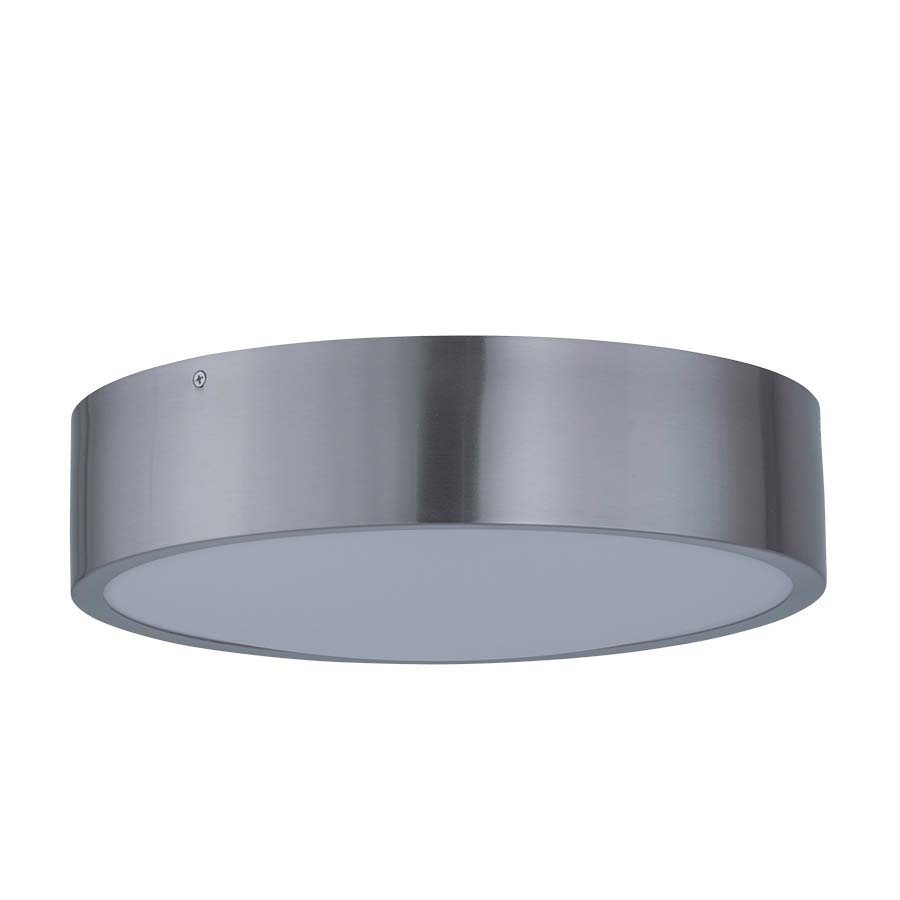 14" diameter Brushed Nickel Integrated LED Ceiling Fixture, 20 watt LED, 1600 lumen, 3000K, 90CRI, direct wired, White Frosted Acrylic Bottom Diffuser.