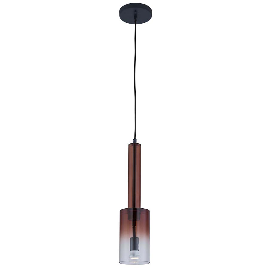 4.75" diameter Gun Metal Pendant, GU10 socket, direct wired, Black Braided Cord, with Coffee Ombre Glass Shade, recommend 7 watt GU10 LED bulb