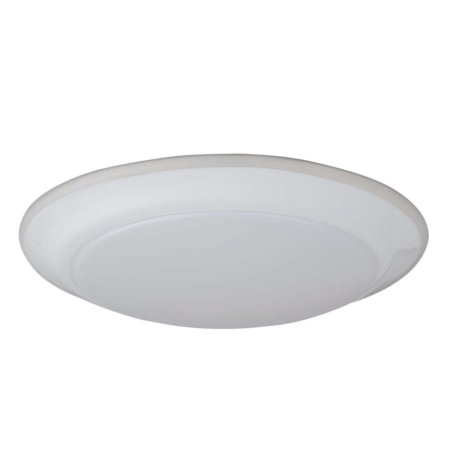 7.5" diameter White Integrated LED Flush Mount Ceiling Fixture, 17 watt LED, 1032 lumen, 120V, 3000K, 90CRI, direct wired, 1-1/8" overall Height, Wet UL.
