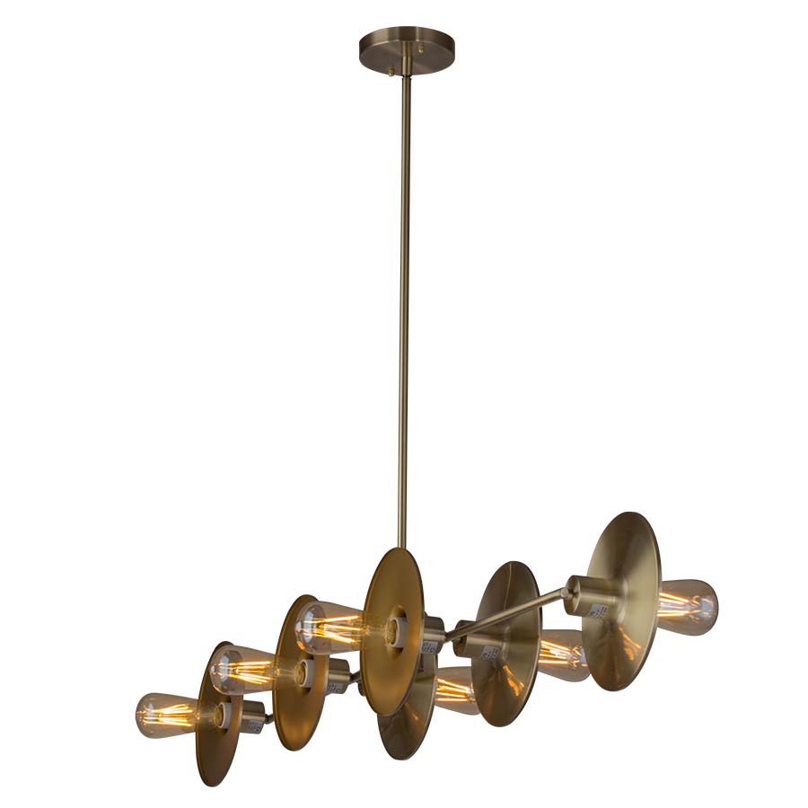 46" W Pendant, shown in Satin Brushed Brass