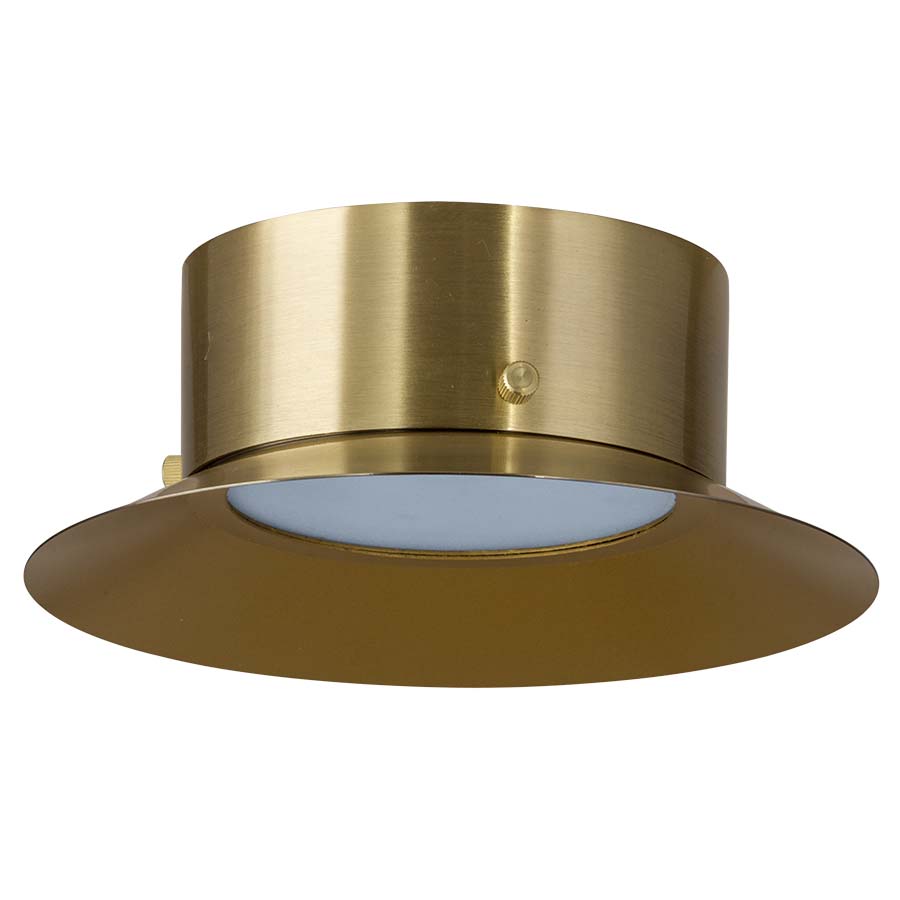 7.25" Diameter Integrated LED Ceiling Fixture shown in Satin Brushed Brass with White Frosted Glass Diffuser.