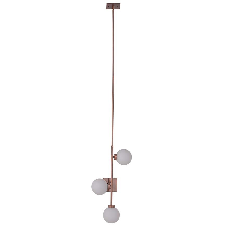 72"H Plated Antique Copper Wall Lamp, three G9 sockets, direct wired, with ceiling and wall plate, adjustable upto 72"H, recommend three 4 watt JCD LED G9 bulbs.