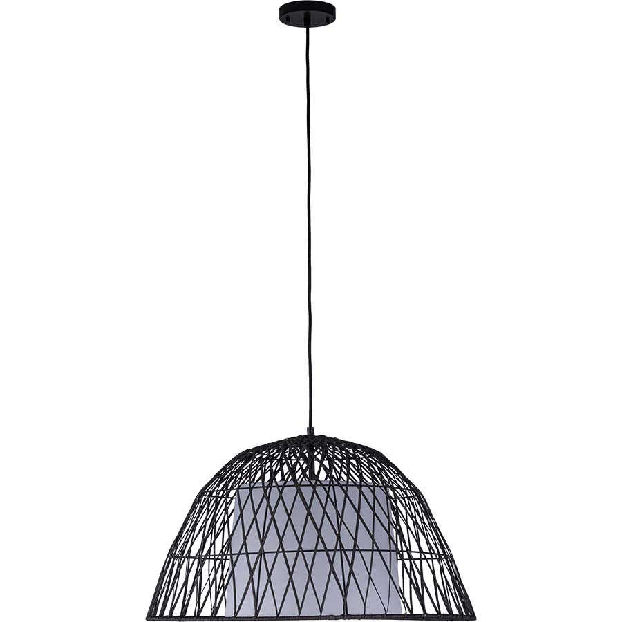 28" diameter Wicker Pendant shown in Deep Forest Brown with White Linen Inner Shade