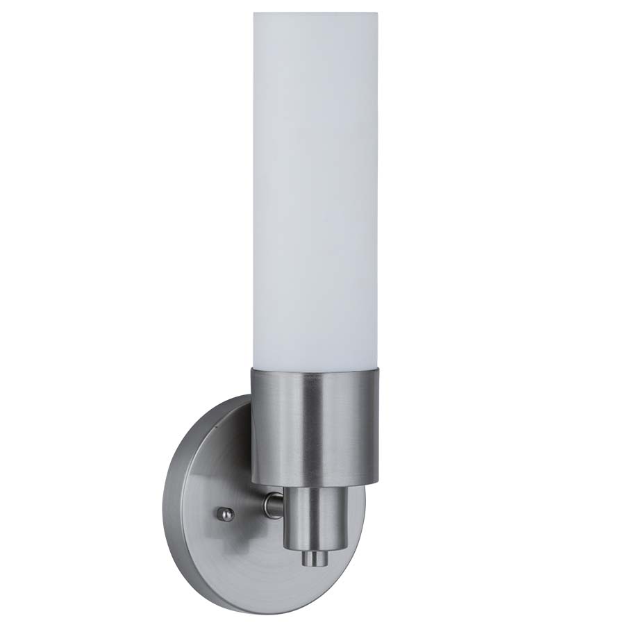 13.5"H Brushed Nickel Wall Sconce, GU24 socket, direct wired, with White Frosted Acrylic Diffuser, recommend 8 watt Quad PL Style LED bulb.