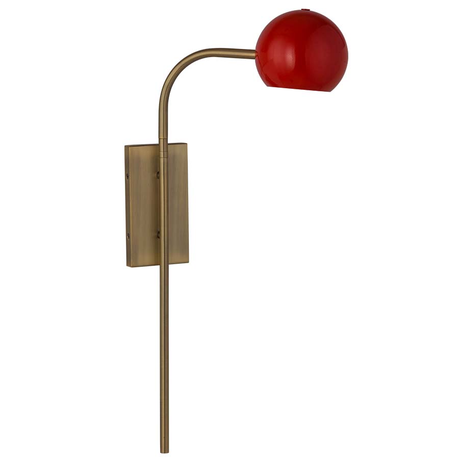29.5"H Wall Lamp shown in Brushed Brass with Red Metal Shade.