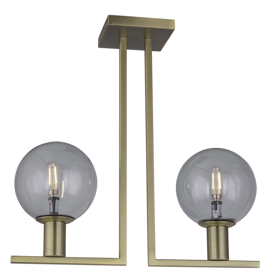 17-7/8" Pendant shown in Brushed Brass with Painted Smoke Glass Globes. Light bulbs not included.