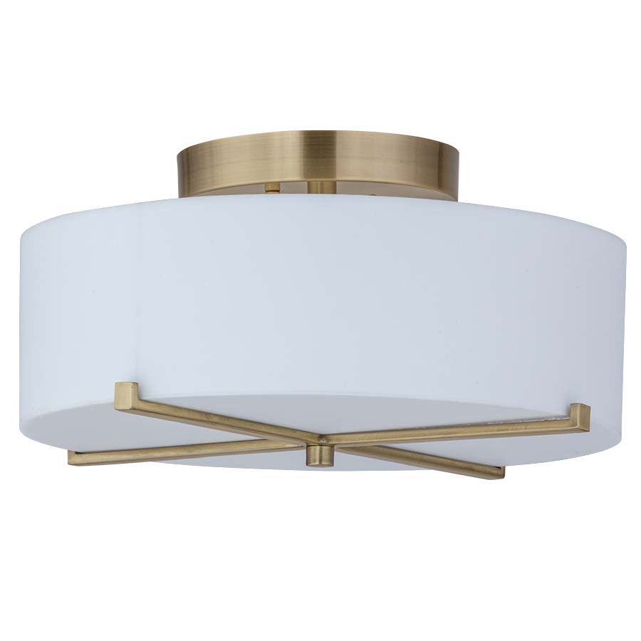 13-1/8" diameter Ceiling Fixture shown in Satin Brushed Brass with Opal Matte Acyrlic Shade.