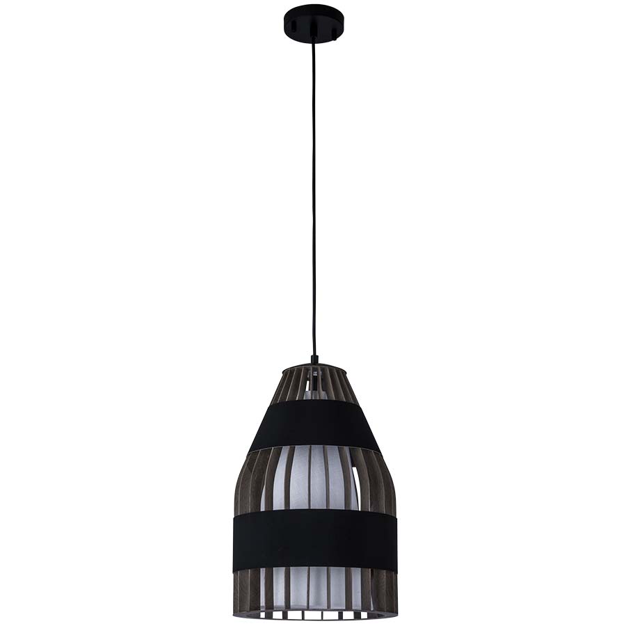 12" diameter x 48"OAH Pendant shown in Bronze and Painted Palisades Oak with Black Linen accents with Cream Linen Inner Shade, medium base socket, direct wired, recommend 11 watt LED bulb