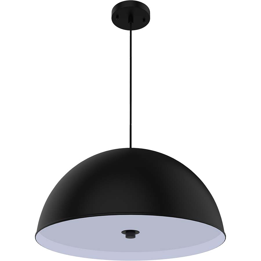 20" diameter x 9-7/8"H Matte Black Powder Coated Pendant, with Stickley Oak Metal Accent, three medium base sockets, direct wired, Adjustable Black Cord, Bottom Acrylic Diffuser, recommend three 1100 lumen LED bulbs