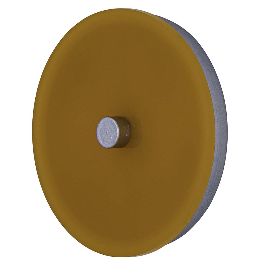 5" diameter Brushed Aluminum Integrated LED Wall Sconce, 4 watt, 400 lumen, 3000K, 90CRI, 120V AC, dimming, direct wired, with Amber Acrylic Diffuser