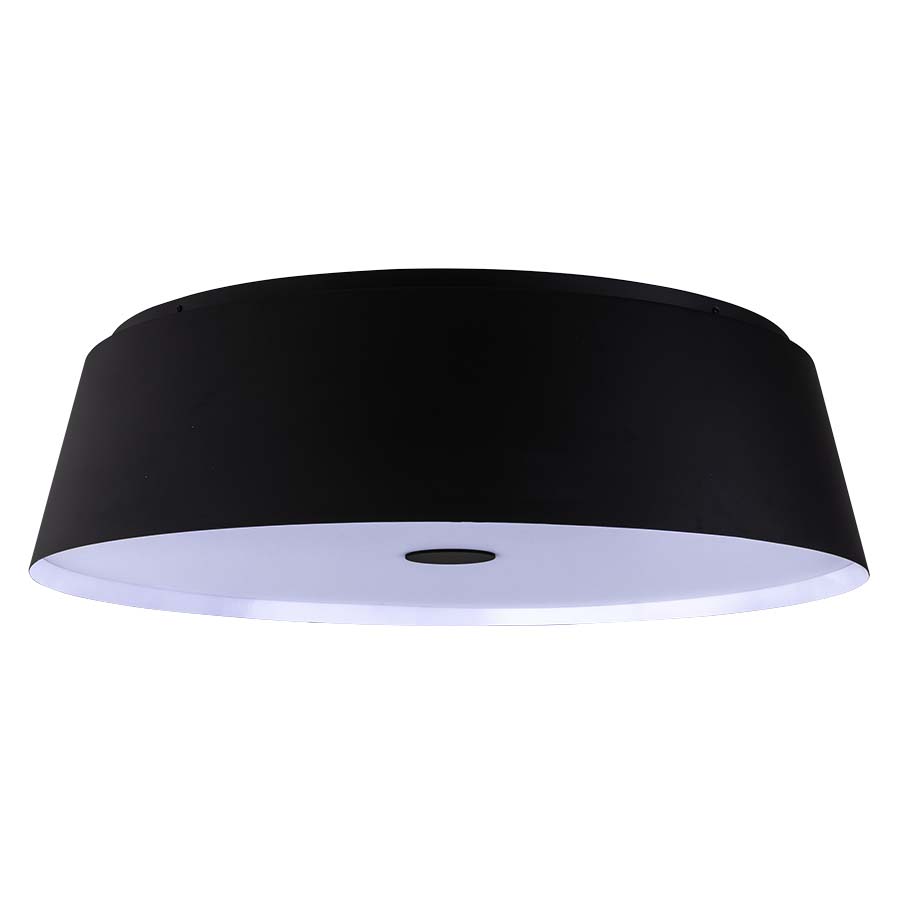36" diameter Matte Black Integrated LED Ceiling Fixture, 8.5 watt LED, 850 lumen, 2700K, 90CRI, 120V AC, direct wired, White Frosted Acrylic diffuser