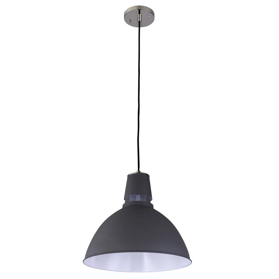 16" diameter Grey and Polished Nickel Pendant, medium base socket, adjustable black cloth cord, direct wired, Grey Metal Shade with Painted White interior, recommend 1100 lumen LED bulb