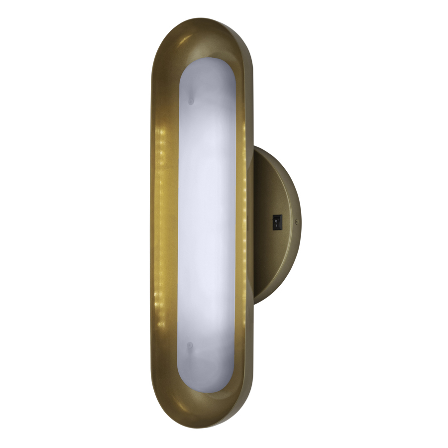 22"H Blackened Brass Integrated LED Wall Sconce, 14 watt LED, 1,200 lumen, 3000K, 90CRI, direct wired, on/off rocker switch at backplate on right side, with White Frosted Acrylic Diffuser