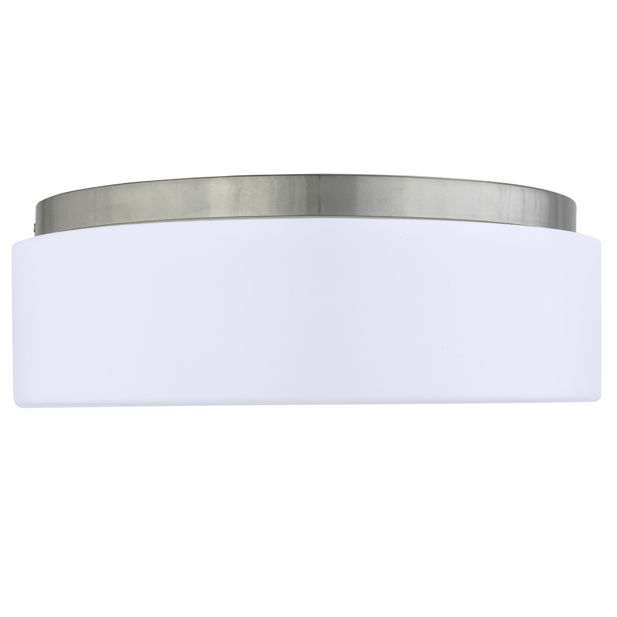 15" diameter Powder Coat to match Tiger Drylac Kromezone 49/95001 Ceiling Fixture, two medium base sockets, direct wired, with Matte White Frosted Acrylic Diffuser, recommend two 800 lumen LED bulbs