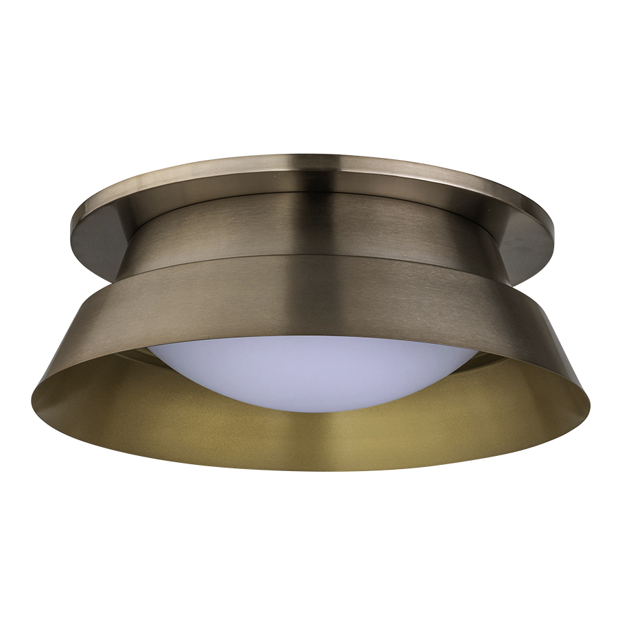 17" Oiled Bronze Aluminum Ceiling Fixture, Two GU24 sockets, direct wired, with Opal Matte Glass Diffuser, with 15" diameter mounting plate, Recommend two 1100 lumen LED bulbs with GU24 base.
