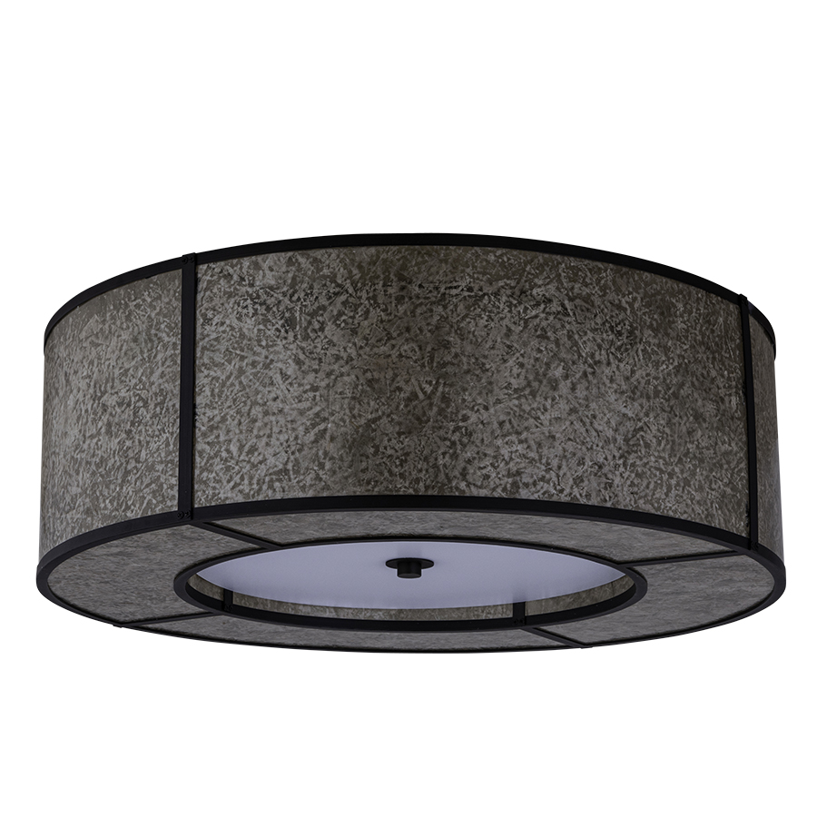 30" diameter Plated Dark Bronze Pendant, four medium base sockets, direct wired, 30"x30"x10" Translucent Capiz Shade open at center, with recessed White Frosted Acrylic Bottom Diffuser, recommend four 800 lumen LED bulbs