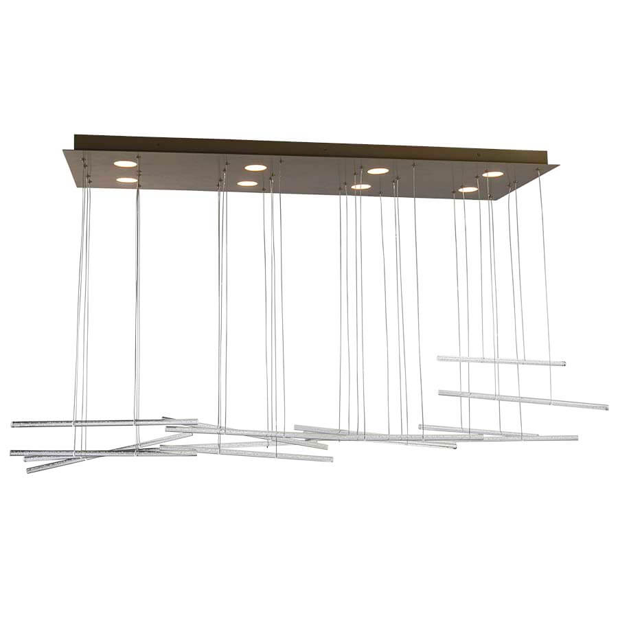 62"W Metallic Gold Integrated LED Pendant, eight 3 watt LED, 2400 lumens, 3000K, 90CRI, direct wired, with Bubble Acrylic Rods, adjustable height up to 36"