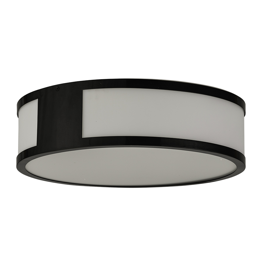 16" diameter Chemetal # 908 Satin Black Aluminum Ceiling Fixture, two GU24 sockets, direct wired, White Frosted Acrylic Diffuser, recommend two 1100 lumen LED bulbs with GU24 base