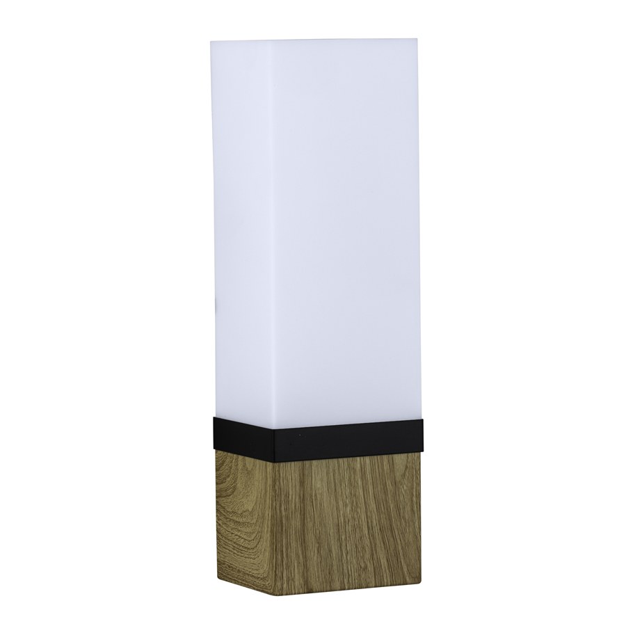 16.5"H Danish Maple 8906-58 and Matte Black Wall Sconce, two medium base sockets, direct wired, with White Frosted Acrylic Shade, recommend two 800 lumen LED bulbs