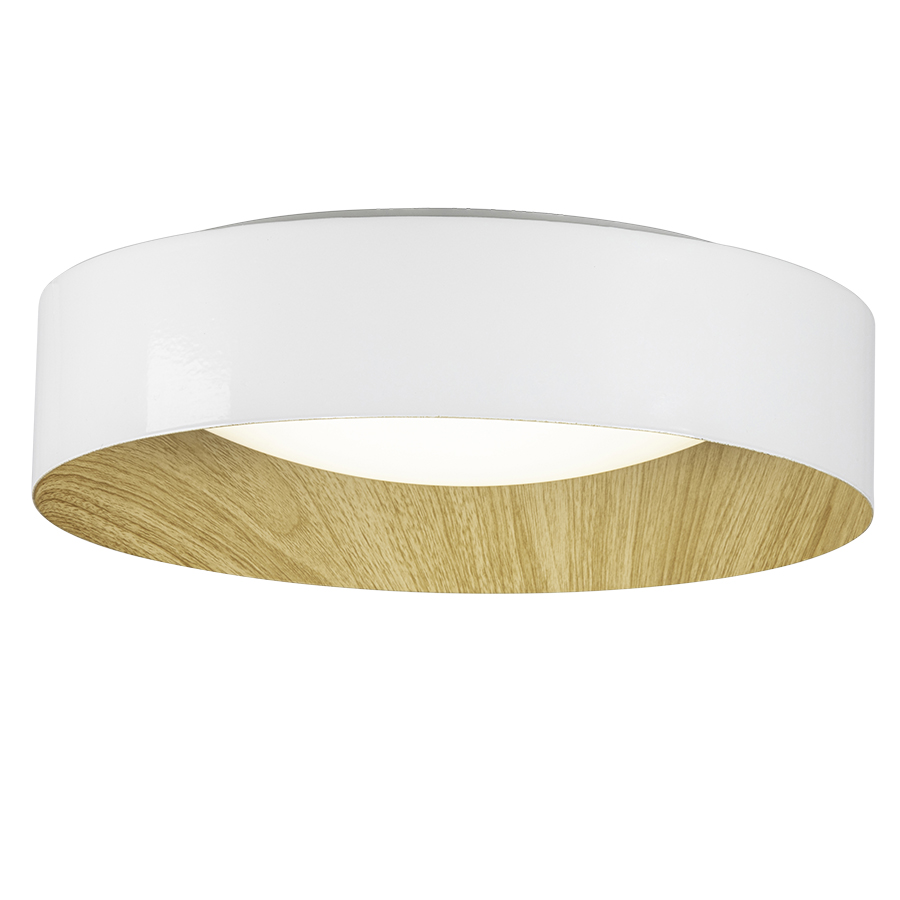 15" diameter Integrated LED White Ceiling Fixture, 24 watt LED, 2400 lumen, 3000K, 90CRI, 120V AC, Direct Wired, Natural Wood Water Transfer Interior, White Frosted Acrylic diffuser