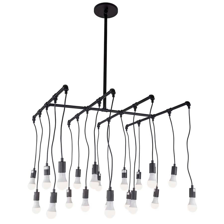 36"W x 36"D Cast Iron Powder Coat Pendant, twenty medium base sockets, direct wired, recommend twenty 8 watt Clear LED bulbs