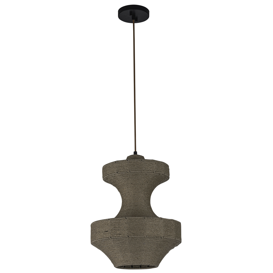 16" diameter x 20"H Light Braided Rope Pendant, Bronze Powder Coat Canopy, medium base socket, direct wired, 3' adjustable brown cord, height adjustable up to 36", recommend 1100 lumen LED bulb