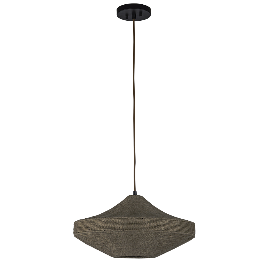 20" diameter x 10"H Light Braided Rope Pendant, Bronze Powder Coat Canopy, medium base socket, direct wired, 3' adjustable brown cord, recommend 1100 lumen LED bulb
