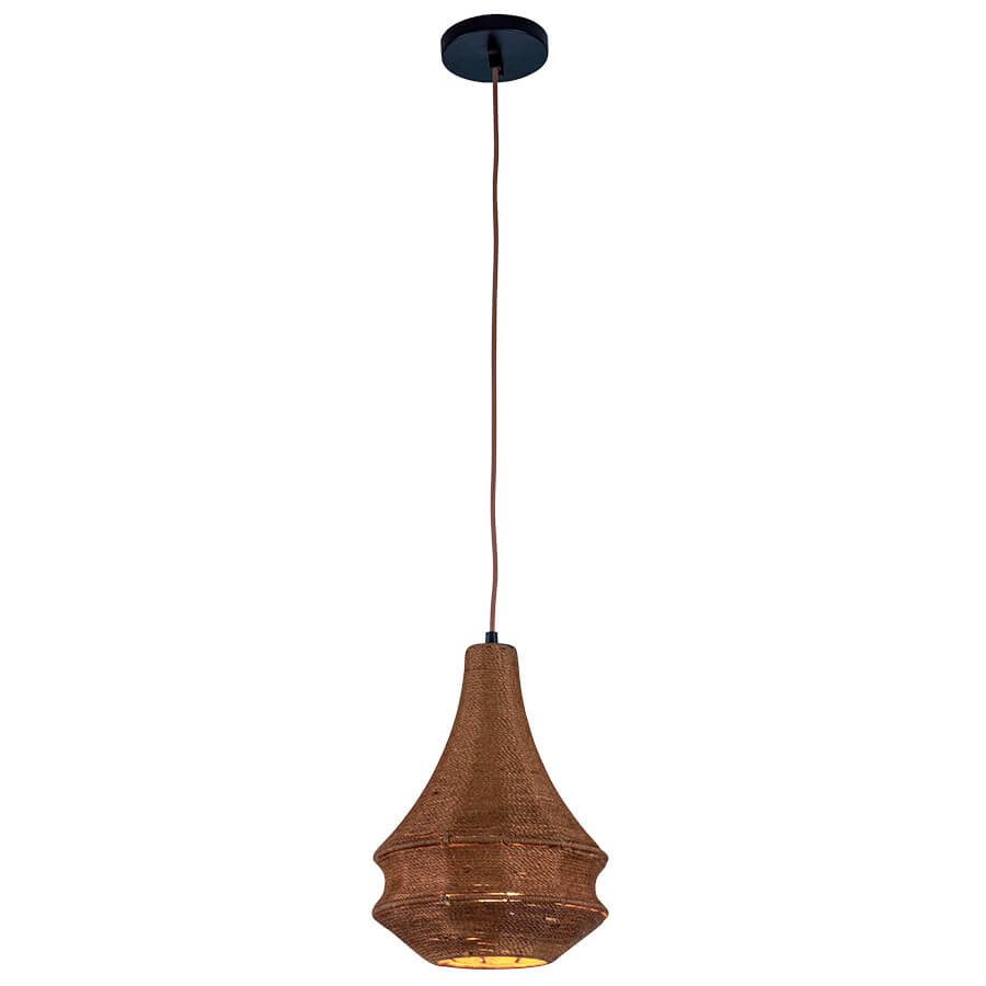 12" diameter x 16"H Dark Braided Rope Pendant, Bronze Powder Coat canopy, medium base socket, direct wired, 3' adjustable brown cord, recommend 1100 lumen LED bulb