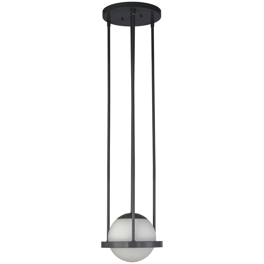 10" diameter Blaugrae RAL 7031 Pendant, medium base socket, direct wired, three down rods, adjustable height from 17-1/8" up to 42.5", 8" diameter Opal Matte Glass Globe, recommend 800 lumen LED bulb
