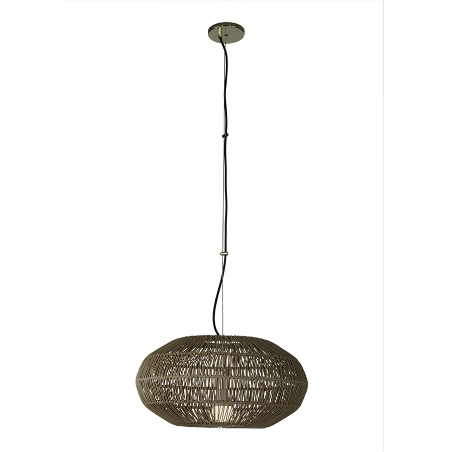 20" diameter x 10"H Synthetic Rope Pendant, with Polished Brass accents, medium base socket, Adjustable Black Braided Nylon cord, direct wired, recommend 1100 lumen LED bulb