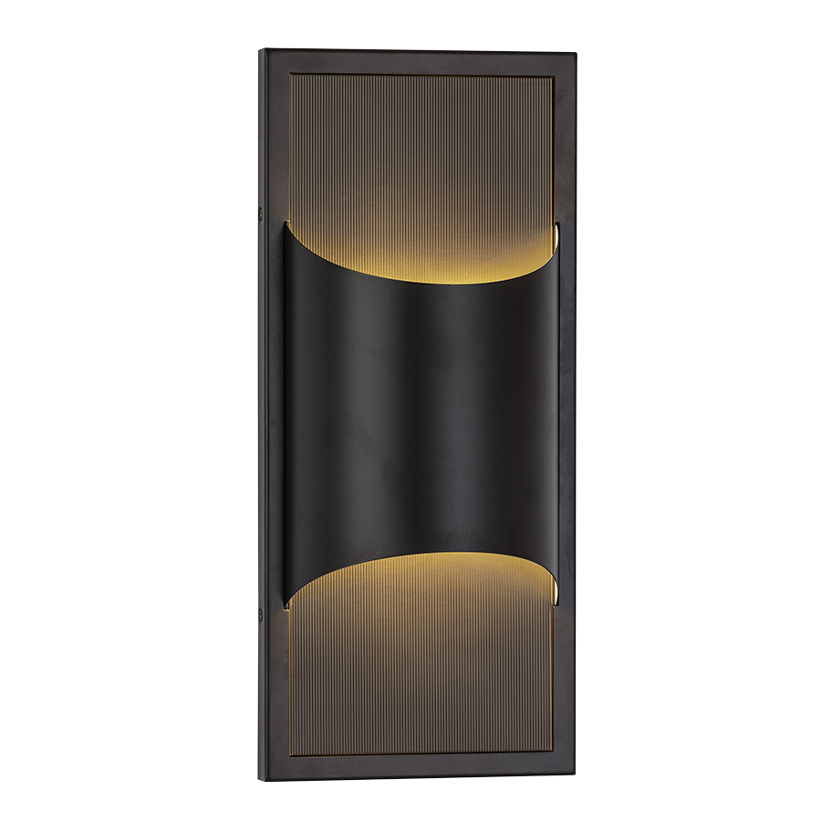 18"H Powder Coat Bronze Integrated LED Wall Sconce, 15 watt, 1500 lumen, 2700K, 90CRI, 120V AC, direct wired, with Painted Amber Etched Organic Rain Glass