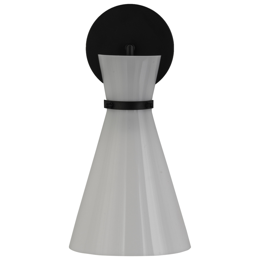 14"H Graphite Black Wall Sconce, E12 socket, direct wired, with Opal White Acrylic, recommend 5 watt Candelabra LED bulb