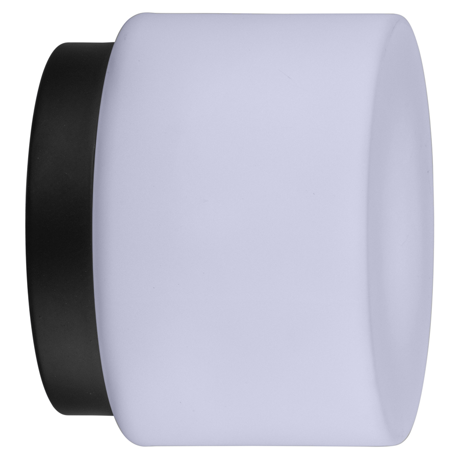 5" diameter x 4"D Matte Black Integrated LED Wall Sconce, 6.5 watt LED, 3000K, 90CRI, Triac Control 10% dimming, direct wired, with Opal Glass Diffuser