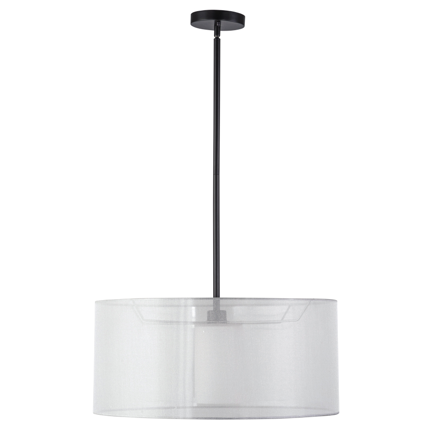 22" diameter Powder Coat Pottery Bronze Pendant, medium base socket, direct wired, 24" down rod, 22"x22"x10" Silver Organza Outer Shade with Opal Matte Glass Inner Shade, recommend 800 lumen LED bulb