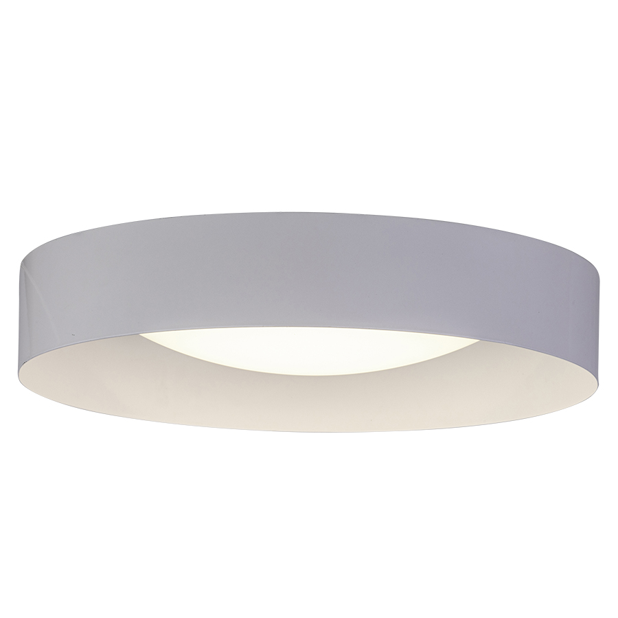 17.75" diameter Powder Coat Satin White Integrated LED Ceiling Fixture, 20 watt, 120V AC, 2000 lumen, 2700K, 90CRI, direct wired, with White Frosted Acrylic Diffuser