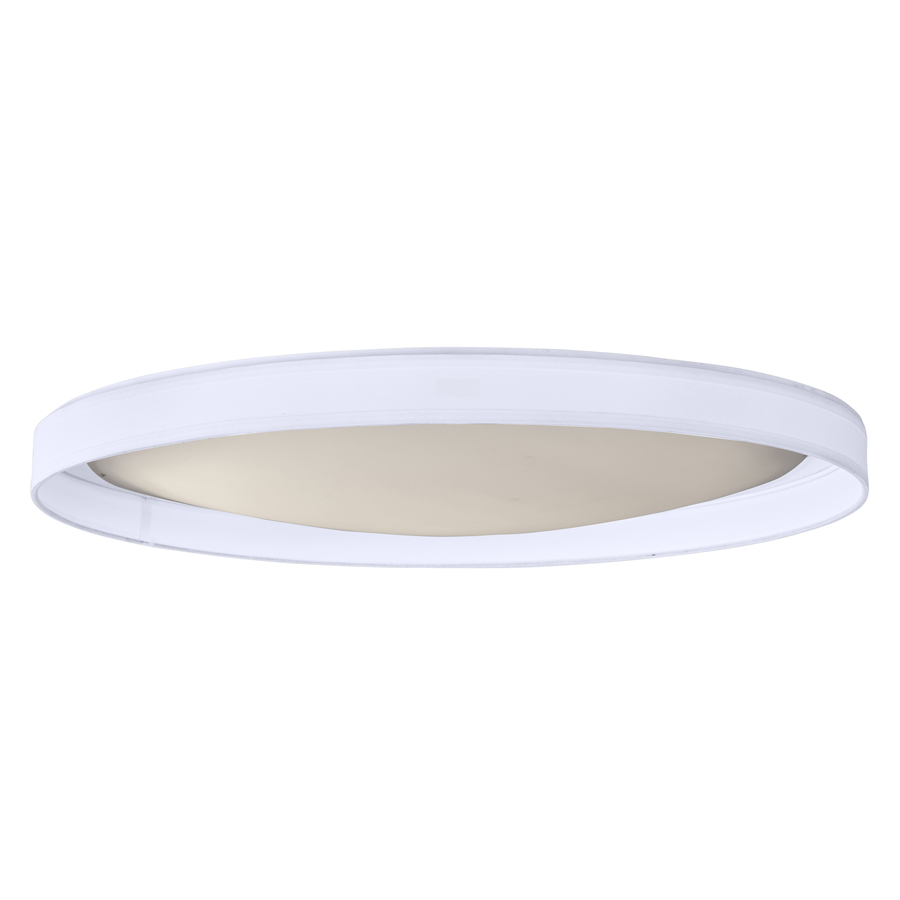 36" diameter Powder Coat White Integrated LED Ceiling Fixture, 30 watt, 3000K, 90CRI, 120V AC, direct wired, White Linen Hardback Shade with White Frosted Acrylic Diffuser