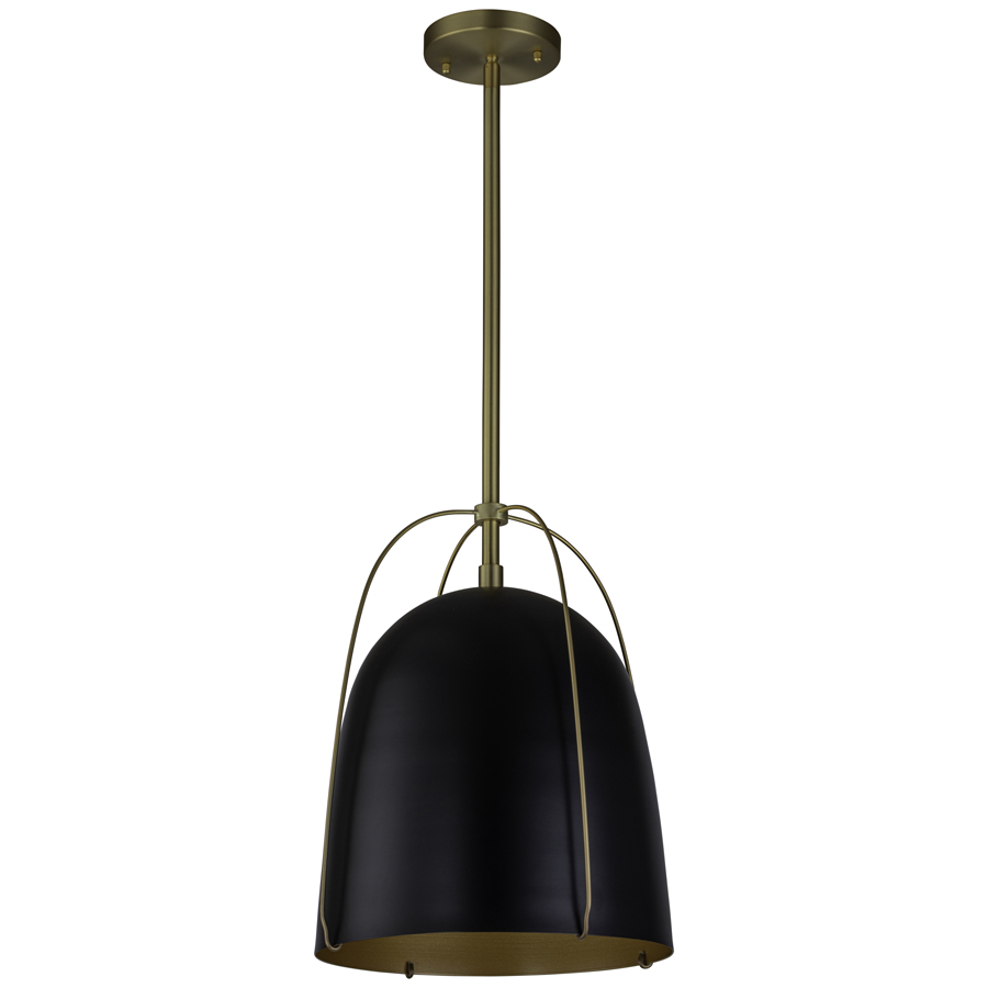 12" diameter Matte Black Pendant with Brushed Satin Gold Interior
