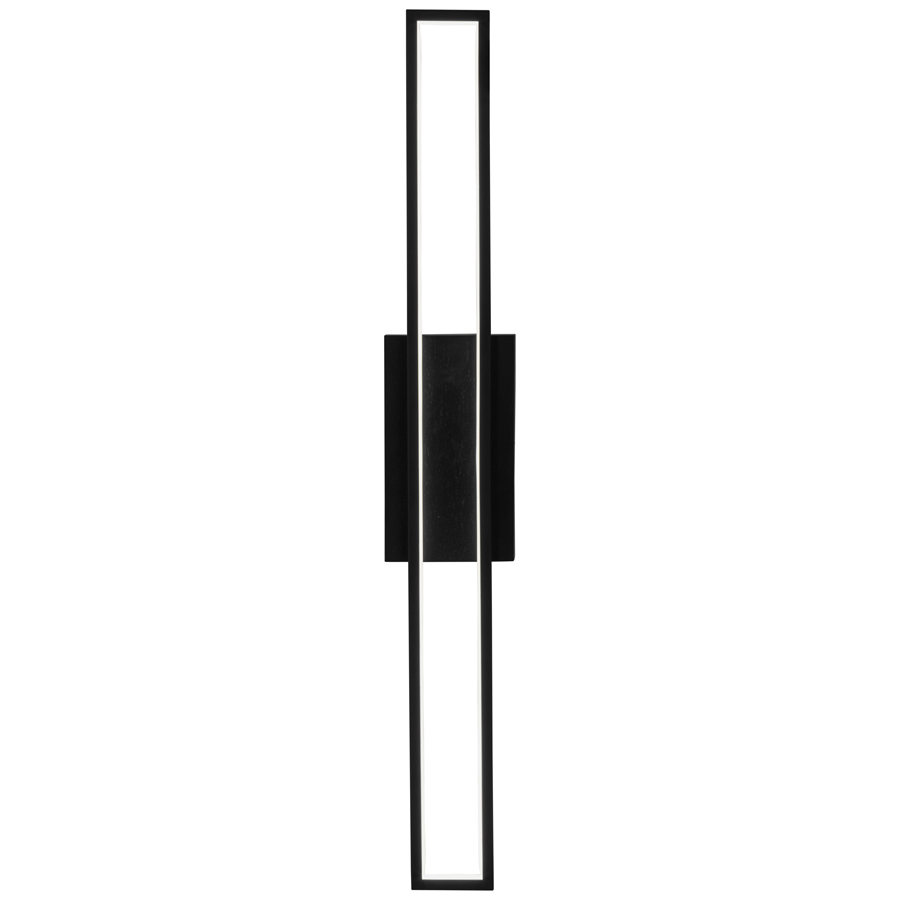 29"H Powder Coat Matte Black Integrated LED Wall Sconce with Black Wood backplate, 30 watt LED, 2700K, DC 12V, direct wired, with White Frosted Acrylic Diffuser