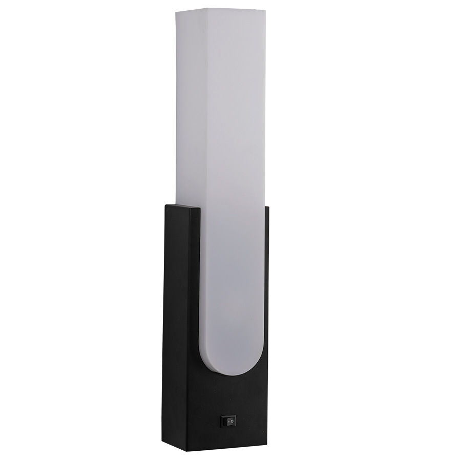 20.75"H Powder Coat finish to match Tiger Drylac Smooth Matte Black 09/80130 Integrated LED Wall Lamp, 8 watt LED, 800 lumen, 3000K, 90CRI, on/off rocker switch at backplate, 8' Silver 45° cord exiting out bottom of lamp with 20" cord cover, with White Frosted Acrylic Shade, 4.5"W, 20.75"H, 3.5"D