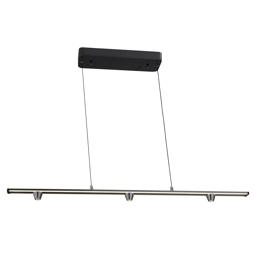 47.24"W Painted Brushed Grey Integrated LED 3-Light Pendant, 48 watt LED, 3000K, direct wired, adjustable black cords, overall height 47.25"H, with three Painted White Aluminum Removable lights
