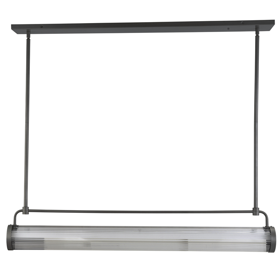 42"W Powder Coat Stainless Steel Integrated LED Pendant, 30 watt LED, 3000 lumen, 2700K, 90CRI, 0-10V dimming, 120V AC, direct wired, with Clear Ribbed Acrylic, 36" Overall height