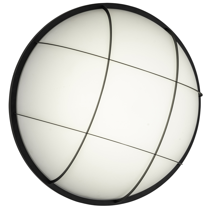 24" diameter Matte Black Integrated LED Outdoor Wall Sconce, 40 watt LED, 4000 lumen, 5000K, 90CRI, 120V AC, direct wired, with White Frosted Acrylic Diffuser, Rated UL Outdoor