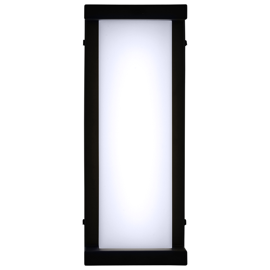 14"H Matte Black Integrated LED Outdoor Wall Sconce, 22 watt, 2200 lumen, 3000K, 90CRI, 120V AC, direct wired, with White Frosted Acrylic, Rated UL Wet Location
