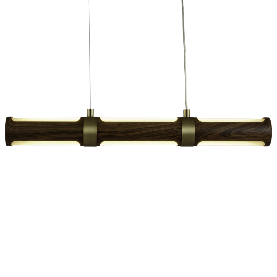 32"W Water Transfer 9CSN009 Light Walnut Wood and Antique Brass Integrated LED Pendant with White Alabaster Acrylic, 40 watt LED, 4000 lumen, 2700K, 120V AC, Dimmable, direct wired, adjustable height up to 60"