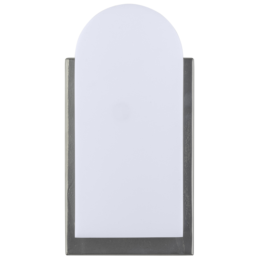 10.75"H Powder Coat to match Tiger Drylac Kromezone 49/95001 Wall Sconce, two medium base sockets, direct wired, with Matte White Frosted Acrylic, recommend two 4 watt T10 Clear LED bulbs