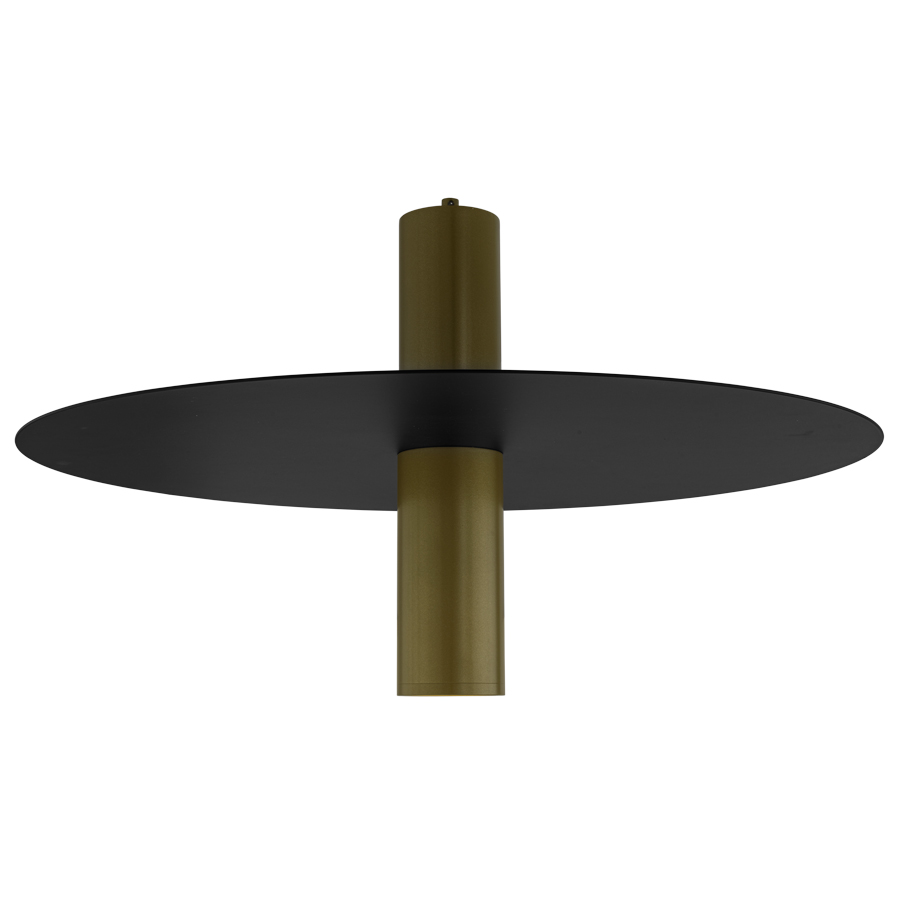 28" Powder Coat Gold and Matte Black Integrated LED Pendant, 10 watt LED, 120V AC, direct wired, overall height 45", with White Clear Frosted Acrylic Diffuser at bottom