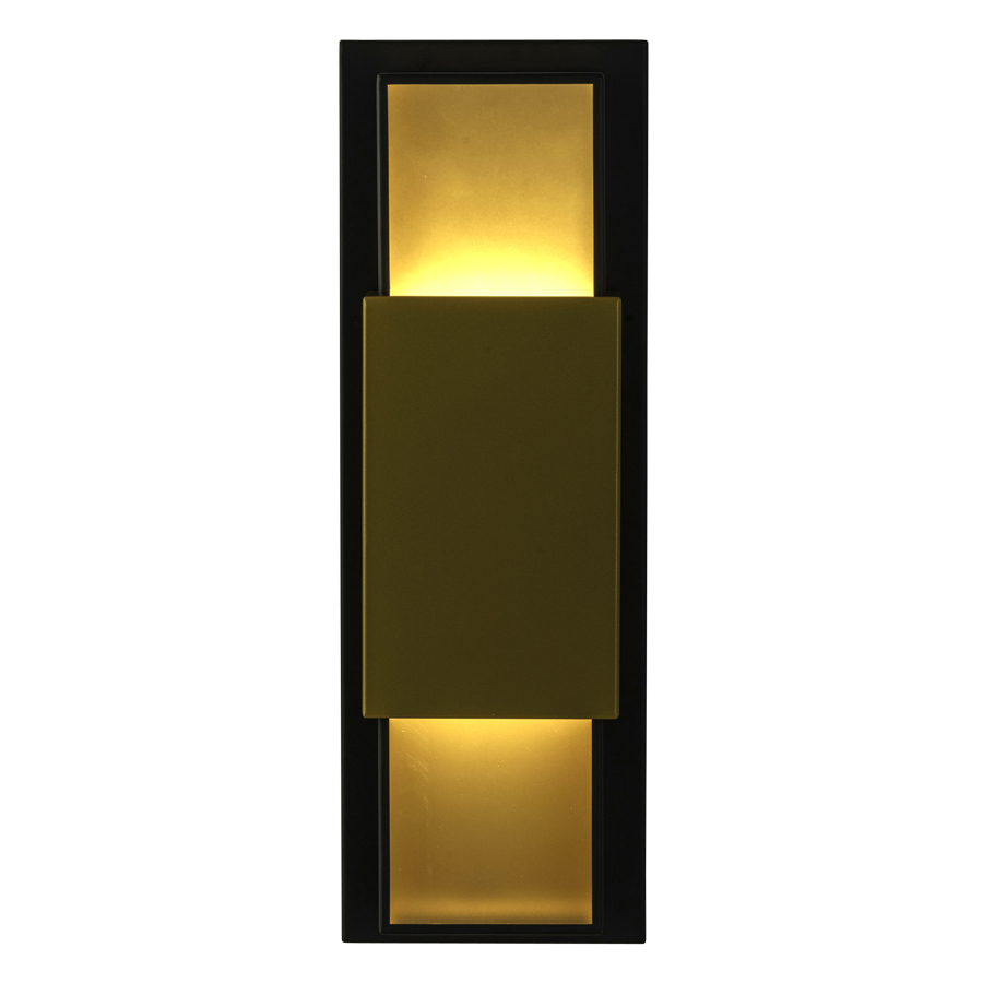 20"H Matte Black and Painted Gold Integrated LED Wall Sconce, two 4 watt LED, 800 lumen, 120V AC, direct wired, with White Clear Frosted Acrylic Diffuser
